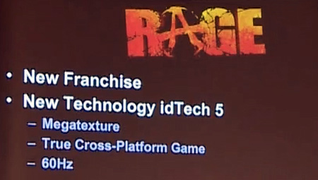 Nach dem Verkauf an Zenimax nennt John Carmack jetzt seine Arbeitsposition bei id selbst "Technical Director". Er redet sich da etwas klein denn intern wird er weit mehr zu sagen haben als dieser läppische Titel vermuten lässt. Der Engine-Programmierer sagt die Entwicklung von Rage habe zu lange gedauert. Deshalb soll die neue Engine, id tech 5, auch für die kommenden Firmentitel benutzt werden (Doom 4, Rage 2). Das Gamedesign müsse zukünftig wieder wichtiger werden. John merkt an er habe aber über die id tech 5 Engine hinaus zumindest noch zwei zukünftige Engine Projekte vor zu verwirklichen (eher Wunsch aber kein zementiertes Versprechen). In den E3 Interviews gibt es eine wirkliche Überraschung mit der Ankündigung eines Rage 2. Rage ist noch nicht mal erschienen da wird ein Nachfolger angekündigt, wirklich einzigartig von John. Der Plan sei das Rage Hauptteam wird nach Rage-Veröffentlichung zu Doom 4 wechseln, dass fertig machen und dann zu Rage 2 übergehen. id Software sind 150 Mann stark.
