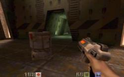Es besteht noch eine andere Möglichkeit an das Secret 1 heranzukommen. Gehe einfach weiter, bis du zu der Stelle im Bild kommst. Der Pfeil zeigt auf ein Faß, das in der Ecke steht (natürlich nur, wenn du nicht wie ein Weltmeister herumgeballert hast. .-) ).