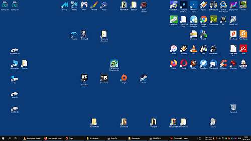 Immer wenn das Thema Desktop aufkommt und ich Bilder sehe, muss ich schmunzeln. In dem Fall sind es Arbeits PCs und die Icons und Verknüpfungen hier sind sehr linkslastig. (pcgamer)
